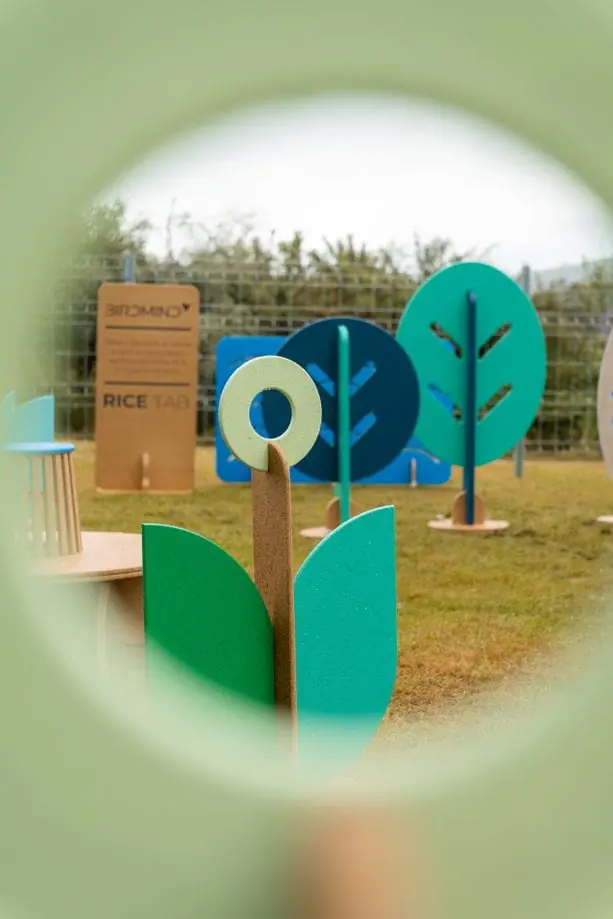Trabajamos con Birdmind para crear un mobiliario sostenible y 100% circular, apoyándonos en los recursos visuales de Mocidade Polo Clima, consiguiendo así un espacio versátil y creativo que llama la atención de los asistentes.